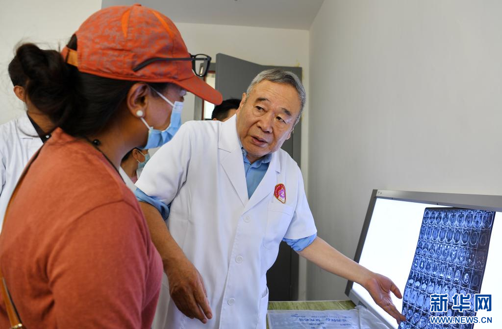 赵继宗院士(右一)在西藏自治区第二人民医院为患者义诊(8月10日摄)。新华社记者 张汝锋 摄