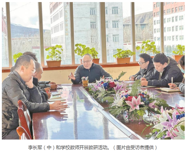 就这样,2022年7月25日,怀着一腔热血,李长军以一名北京援青干部人才的身份来到了玉树藏族自治州第二民族高级中学(以下简称玉树二高)。还没来得及跟学生见面,第二天,高原反应就先给身材瘦削的他“上了一课”。白天吃不下,晚上睡不着,脑袋发胀,快走两步就喘得上气不接下气。原本以为这种状况能让年过半百的李长军知难而退,可他却愈挫愈勇。