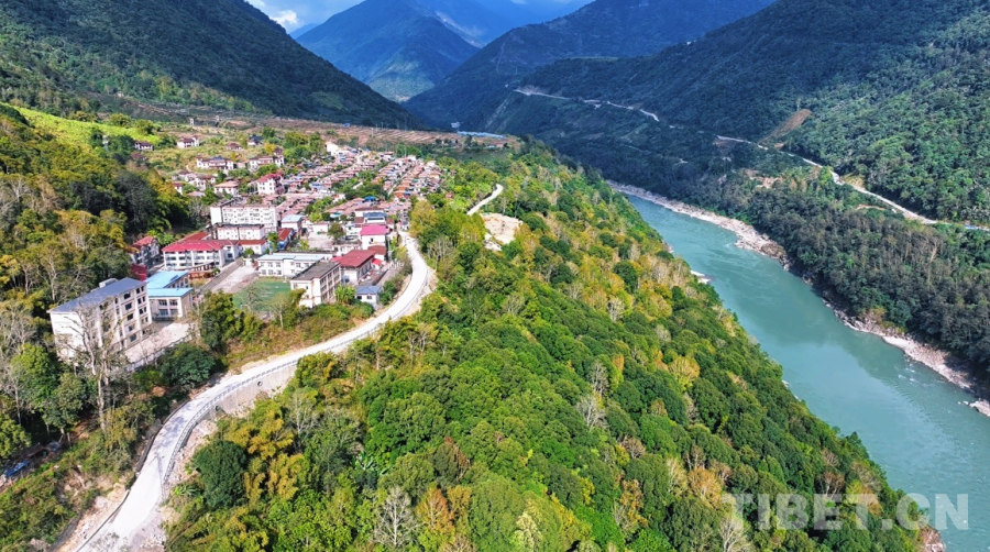 西藏自治区林芝市墨脱县德兴村鸟瞰 航拍:达次
