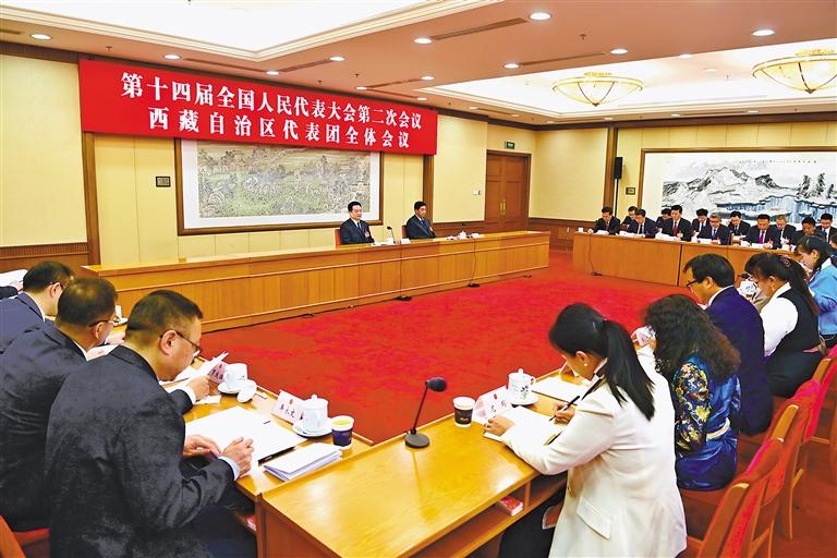 3月10日,西藏代表团举行全体会议,继续审议全国人大常委会工作报告、最高人民法院工作报告、最高人民检察院工作报告;审议关于政府工作报告、年度计划、年度预算的决议草案。