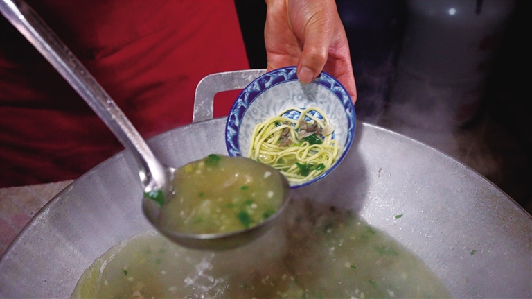 2010年,盐井加加面被列入西藏自治区级非物质文化遗产代表性名录。37岁的果拉卓玛,是这项技艺的传承者之一。她回忆道,早年父母在街边支摊卖面时,加加面只是再寻常不过的一道家常面食。如今,这碗面被赋予了文化符号的意义——食客们比拼碗数,最高纪录达147碗,若破纪录,还能终生免费吃面。“石头计数、民歌敬酒,这些传统习俗让吃面变成了一场热闹的仪式。”果拉卓玛笑着说。