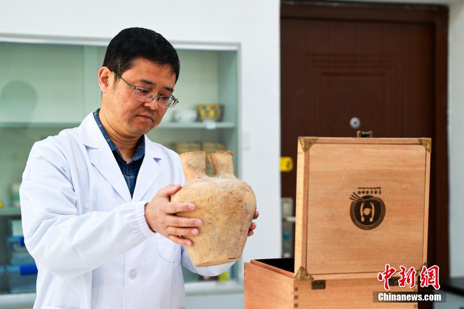 5月13日,青海省博物馆文物保护中心文物修复师李峰取出待修复的新石器时代宗日文化折线纹彩陶壶。该中心自成立以来,已修复逾700件珍贵文物。文物修复师们日复一日,用妙手匠心“唤醒”文物新生。