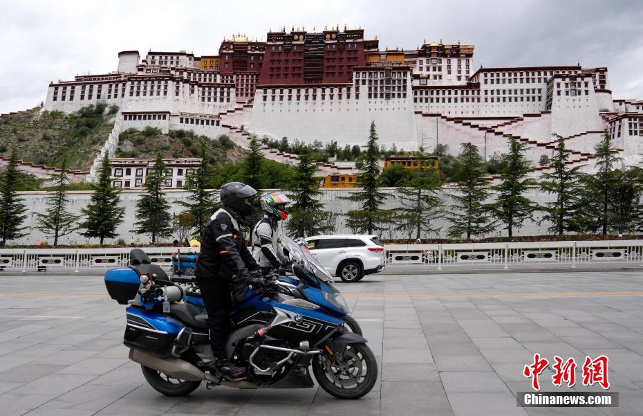 7月3日,摩旅爱好者自驾经过布达拉宫。随着暑期旅游旺季的到来,进藏自驾游成为旅行爱好者的热门选择。房车爱好者、摩旅爱好者选择自驾抵达拉萨,专程途经布达拉宫打卡。