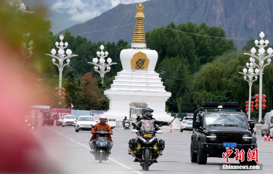 7月3日,摩旅爱好者行驶在拉萨街头。随着暑期旅游旺季的到来,进藏自驾游成为旅行爱好者的热门选择。房车爱好者、摩旅爱好者选择自驾抵达拉萨,专程途经布达拉宫打卡。