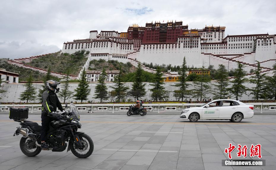 7月3日,摩旅爱好者自驾经过布达拉宫。随着暑期旅游旺季的到来,进藏自驾游成为旅行爱好者的热门选择。房车爱好者、摩旅爱好者选择自驾抵达拉萨,专程途经布达拉宫打卡。