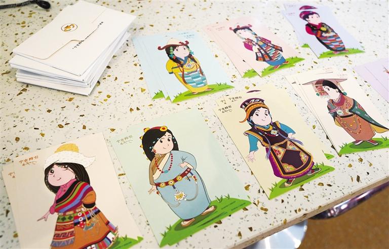 目前,藏博邮礼邮政服务点已向公众免费提供13枚主题印章的集章服务。其中,镇馆之宝章以昌都卡若遗址出土的双体陶罐为原型,将新石器时代的历史厚重凝练于方寸之间;格桑花与张大人花章则以高原特色花卉为媒,定格雪域的生态之美;而博物馆原创卡通形象“宁吉姆啦”的萌趣造型,更以年轻化表达拉近了公众与文化遗产的距离。此外,还特别提供了手写藏文祝福服务——工作人员日均书写40至70张、旺季单日超百张的藏文版“扎西德勒”,不仅承载着语言艺术的魅力,更以笔尖的温度将人文关怀镌刻成游客珍藏的“文化信物”。