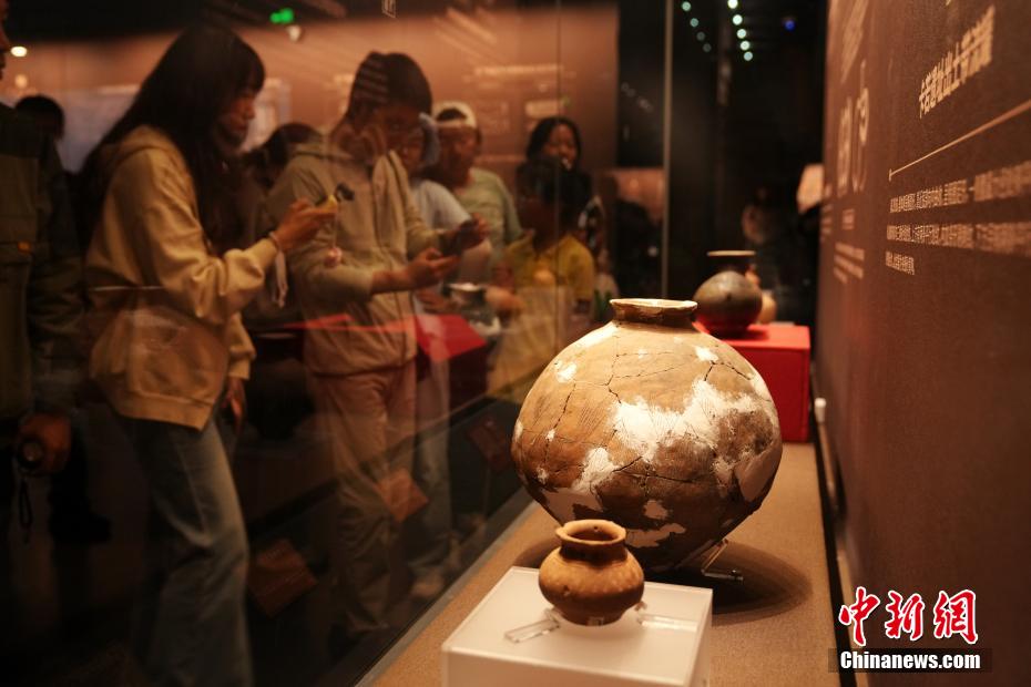 7月15日,在位于西藏拉萨的西藏博物馆,卡若遗址出土的陶器吸引观众。据了解,西藏博物馆设有基本陈列《雪域长歌—西藏历史文化展》《离太阳最近的人—西藏民俗文化展》,充分展示西藏地区历史发展进程与文化面貌。