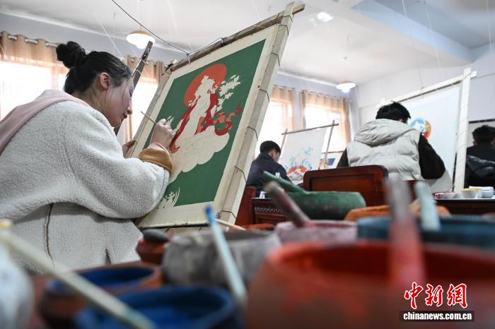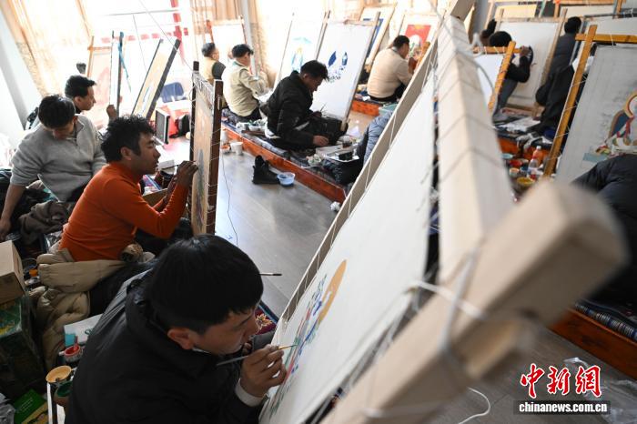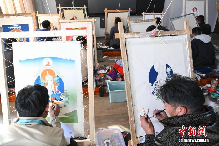 11月23日,第二届“工巧杯”西藏工艺美术中青年高技能人才技艺大赛现场实操技能在拉萨市唐卡艺术博物馆开赛。本次大赛以“薪火相传 守正创新”为主题,由284名选手来自西藏6(市)地的42个县(区),涵盖唐卡、雕塑、编织等36类工艺。据悉,西藏工艺美术行业现有2700余家市场主体、3.7万余名从业者,2024年产值超30亿元(人民币)。图为参赛选手在画唐卡。中新社记者 贡嘎来松 摄