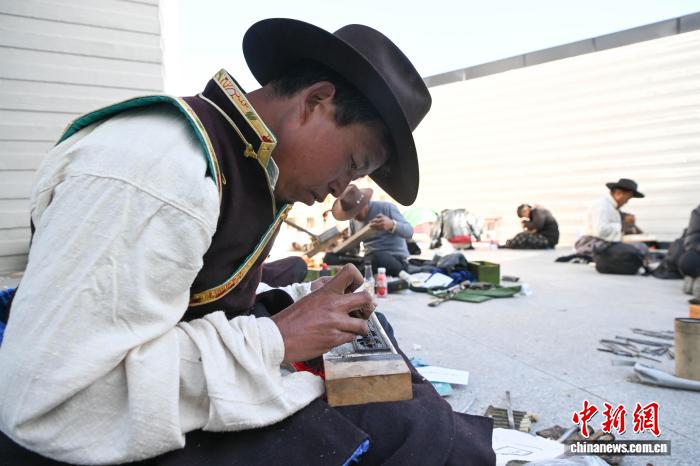 11月23日,第二届“工巧杯”西藏工艺美术中青年高技能人才技艺大赛现场实操技能在拉萨市唐卡艺术博物馆开赛。本次大赛以“薪火相传 守正创新”为主题,由284名选手来自西藏6(市)地的42个县(区),涵盖唐卡、雕塑、编织等36类工艺。据悉,西藏工艺美术行业现有2700余家市场主体、3.7万余名从业者,2024年产值超30亿元(人民币)。图为参赛选手在木板上雕刻图案。中新社记者 贡嘎来松 摄