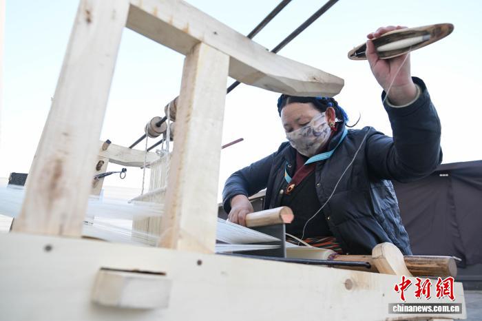11月23日,第二届“工巧杯”西藏工艺美术中青年高技能人才技艺大赛现场实操技能在拉萨市唐卡艺术博物馆开赛。本次大赛以“薪火相传 守正创新”为主题,由284名选手来自西藏6(市)地的42个县(区),涵盖唐卡、雕塑、编织等36类工艺。据悉,西藏工艺美术行业现有2700余家市场主体、3.7万余名从业者,2024年产值超30亿元(人民币)。图为参赛选手在手工编织邦典。中新社记者 贡嘎来松 摄