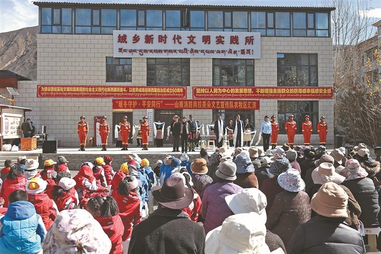 近日,山南市消防救援支队岗拉美朵文艺队走进农牧区,带着“暖冬情”奔走巡演,以群众喜闻乐见的方式筑牢基层消防防线、守护千万“平安家”,让消防安全知识深入人心。