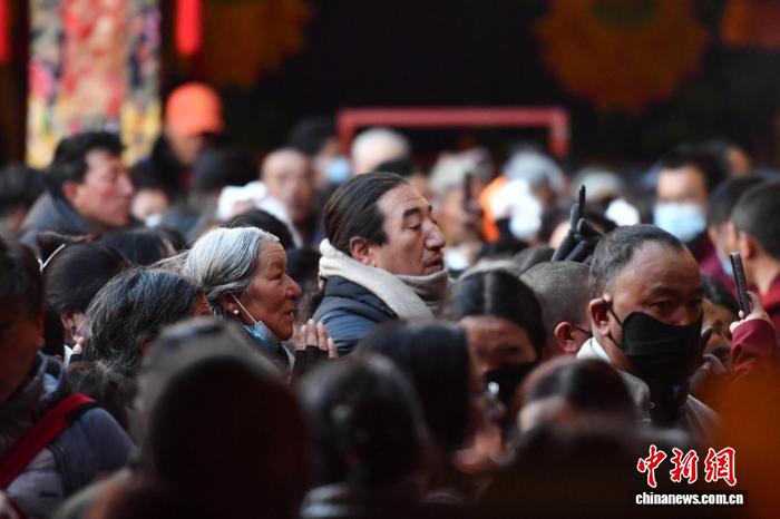 图为信众在神像面前虔诚祈福。贡确 摄