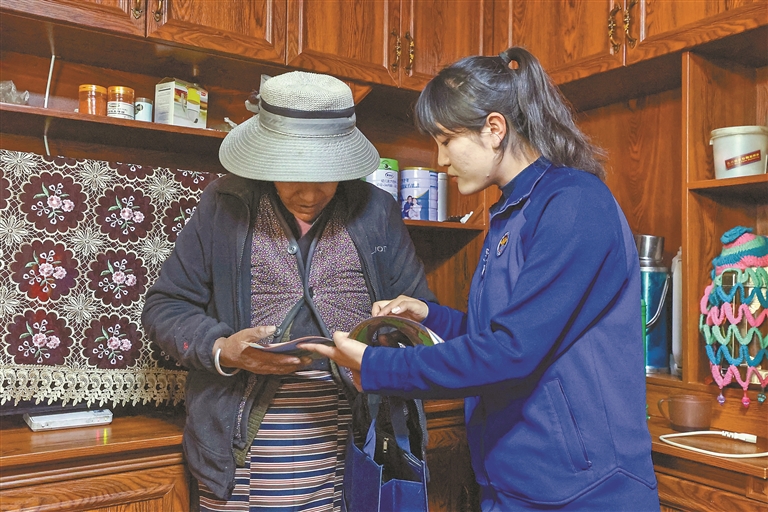 图为岗拉美朵女子双语志愿服务队开展“敲门入户”行动。记者 王香香 见习记者 土旦仁青 摄