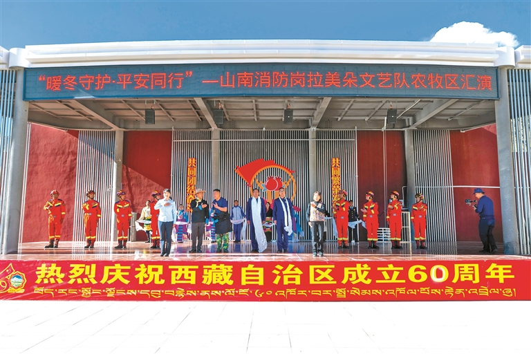 近日,山南市消防救援支队岗拉美朵文艺队“农牧区暖冬消防行”巡演首演,在乃东区多颇章乡嘎东团结新村正式拉开帷幕。
