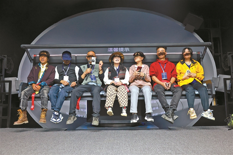 图为游客在8D飞行影院体验并了解琼结县的历史人文。