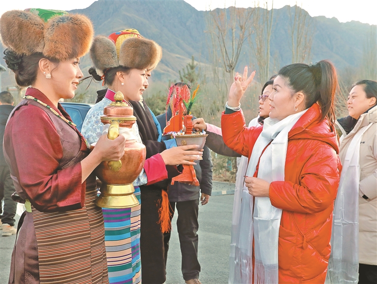 “藏族同胞身着盛装,敲锣打鼓,热情地迎接八方来客,还精心准备了当地特色美食和地道非遗展示,大家内心满是激动。”王芳说,“我们这次打破了传统的旅游模式,不入住酒店,而是走进藏族同胞家中,深切感受着各民族一家亲的温暖。祝愿祖国繁荣昌盛,也祝山南市全体人民马年大吉,扎西德勒!”