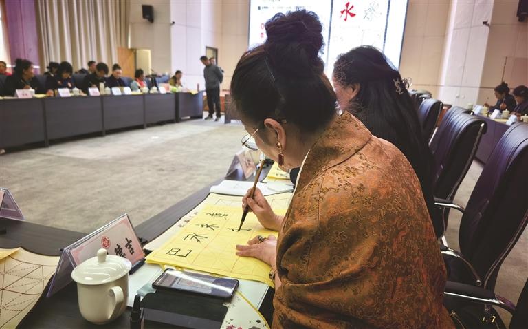 妇女代表在笔墨书香中感受中华优秀传统文化魅力。文/图 记者 娄梦琳