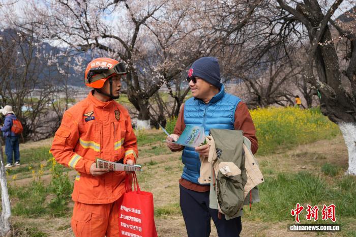 行动中,大队聚焦游客集散点、桃花林核心区域,设立定点防火宣传点,通过藏汉双语展板、宣传手册及现场讲解,向游客普及森林防火常识与应急避险技能。同时组建流动宣传小队,借助广播宣讲、沿街提醒等方式,将消防安全知识延伸至游客步道、沿街商户,实现宣传无死角、全覆盖。
