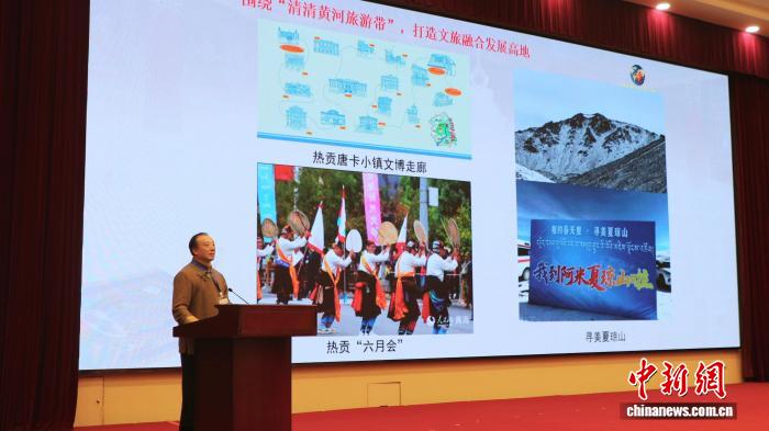 图为中国工艺美术大师、国家级非物质文化遗产代表性项目热贡艺术代表性传承人娘本受邀在分论坛发言。同仁市委宣传部供图
