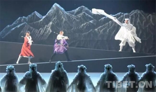 新版的舞美样式更加现代化,更加贴近现代的舞台表达,以虚拟写意的呈现方式,凸显西藏高原的辽阔广袤、清澈透亮、天高云淡、水天一色的地域特点。