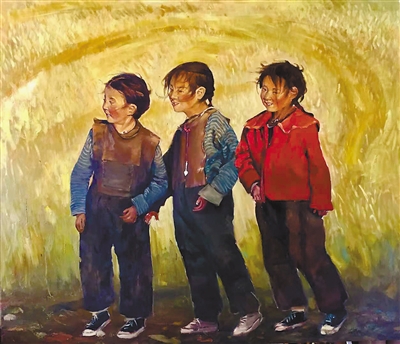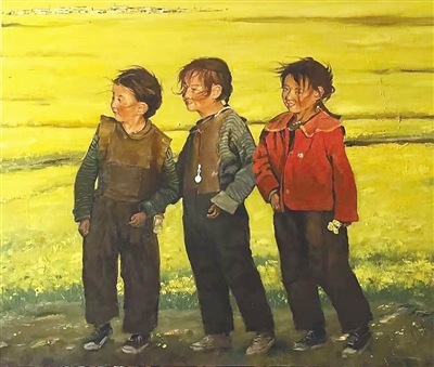 这样的问询似乎也触动了作者张鹰的心,最后,他给了安顿画中三姐妹的家园:手中与身后是嫩黄充满生机的油菜花,村庄也并不遥远,而站在这熟悉的田埂,几个小姐妹是安闲、自在与快乐的,等待她们的是漫长如油菜花田一样的静好岁月,说不定身后已经传来炊烟袅袅,已经传来阿妈的呼唤……