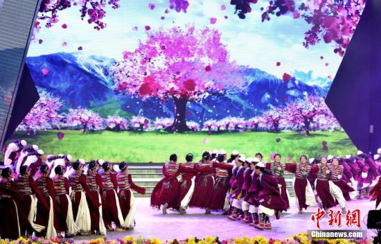 图为演出结束后尼玛旺久登台谢幕。中新社记者 贡桑拉姆 摄