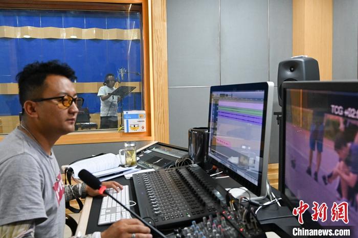 图为7月19日,在拉萨拍摄的年轻一代电影配音演员进行单轨录音。 中新社记者 赵朗 摄