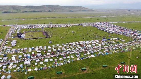 2020年8月,甘肃甘南州夏河县举行第三届拉卜楞香浪节。图为藏族民众身着节日盛装载歌载舞。(资料图) 高展 摄