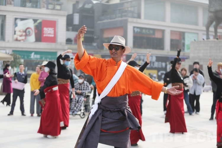 在大唐西市、兴庆宫公园等地,沙多等多位藏舞推广传承人与西安当地锅庄舞团队交流展演,现场气氛热烈。
