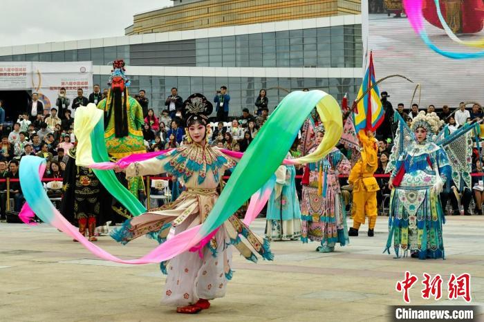 巡游上的川剧展示。川剧俗称川戏,主要流行于中国西南川、渝、云、贵四省市的汉族地区,是融汇高腔、昆曲、胡琴(皮黄)、弹戏(梆子)和四川民间灯戏五种声腔艺术而成的传统剧种,乃中国最古老的剧种之一,为国家级非物质文化遗产代表性项目。记者 刘忠俊 摄