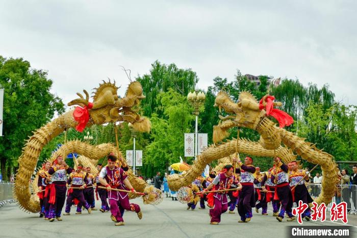 “沐川草龙”展演现场。“沐川草龙”又称“黄龙”,至今已有1400多年历史,是盛行于四川省乐山市沐川县一带的草编技艺,为国家非物质文化遗产代表性项目。“沐川草龙”不但扎制精妙,舞龙的套路也颇具特点。记者 刘忠俊 摄
