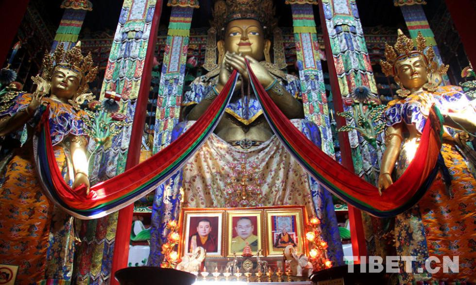 中国西藏网讯 看到藏传佛教艺术风格如此浓郁的庄严法相,你或许会以为我正置身于雪域高原。其实,这里是位于辽宁省阜新蒙古族自治县佛寺镇佛寺村的瑞应寺。图为瑞应寺扎仓内的弥勒佛造像。摄影:李元梅