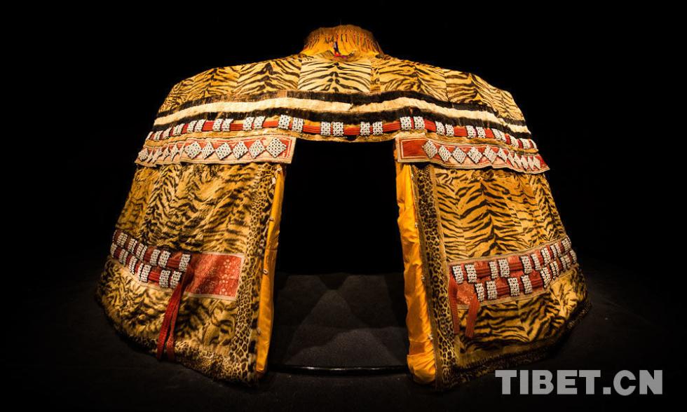让人震撼的是世界唯一虎皮制作的百虎帐篷(一百张虎皮),表现了康巴藏区独特的土司文化,展现了游牧民族生产生活的独特创意。图为百虎帐篷。摄影:赵耀。