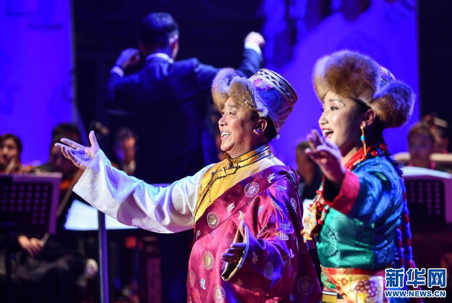 11月25日,在纪念西藏自治区藏剧团成立60周年藏戏音乐会现场,演员在演唱经典藏戏片段。新华社记者 晋美多吉 摄