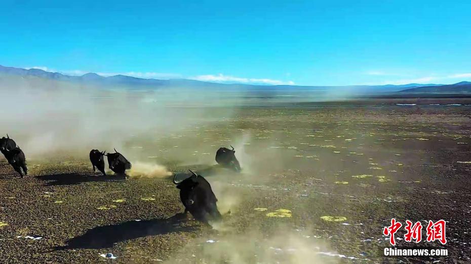 近日,在甘肃省酒泉市肃北县,200多头野牦牛组团迁徙,场面震撼。作为高原上的霸主,野牦牛平时生活在海拔3000米至6000米的高山草甸地带,是典型的高寒动物,性极耐寒。野牦牛分布于青海、西藏、甘肃西北部等地,属于国家一级保护动物。 李天海 摄