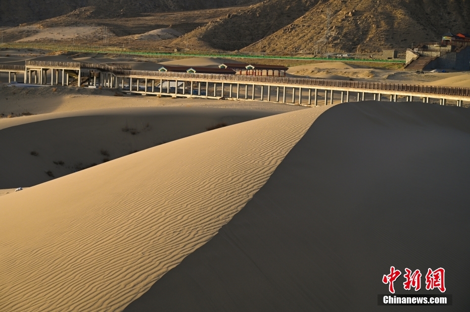 12月24日,记者走进扎囊国家沙漠公园。这座沙漠公园位于山南市扎囊县,是西藏自治区首家国家沙漠公园。2017年,扎囊国家沙漠公园建设项目已通过中国国家林业部门专家评审。按前期规划,公园由生态保育区、科普宣教区、沙漠科技馆、沙生植物园、沙漠生态治理示范园、生态游憩区等部分组成。沙漠作为独特的生态系统是自然生态环境中的重要部分。当地政府在进行保护生态环境、维护荒漠生态系统结构和功能的前提下,探索合理利用沙漠公园的景观资源和文化资源。图为沙漠公园里的参观栈桥。 中新社记者 赵朗 摄