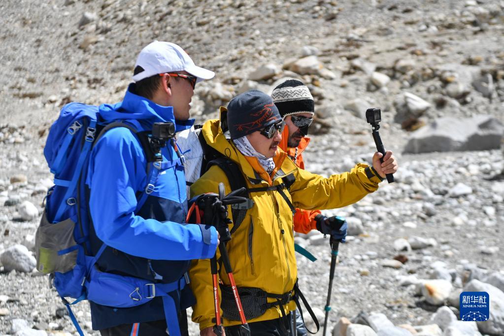 5月18日,登山队出发前在珠峰大本营合影。新华社记者 孙非 摄