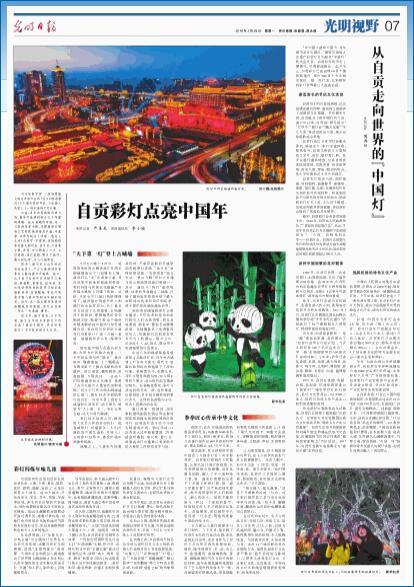 2月26日,《光明日报》7版用一整版的篇幅报道了自贡彩灯,文章点赞道,始于唐宋、兴于明清、盛于当代的自贡彩灯不仅点亮了盛世中国年,更向世界展示了中华民族的文化自信。