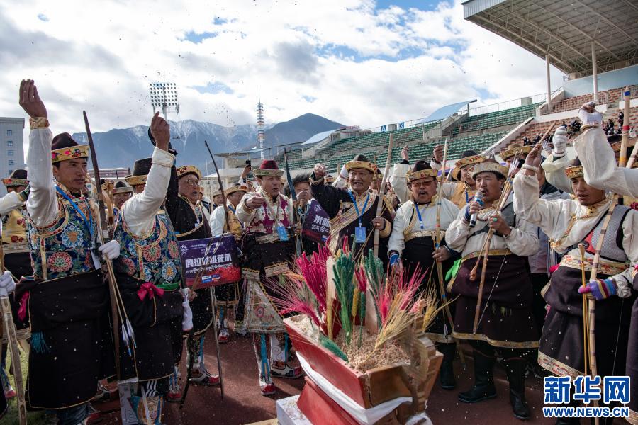 11月19日,西藏山南市错那县代表队参加赛前表演。新华社记者 普布扎西 摄