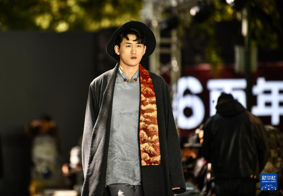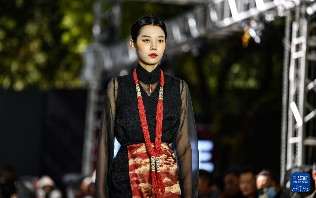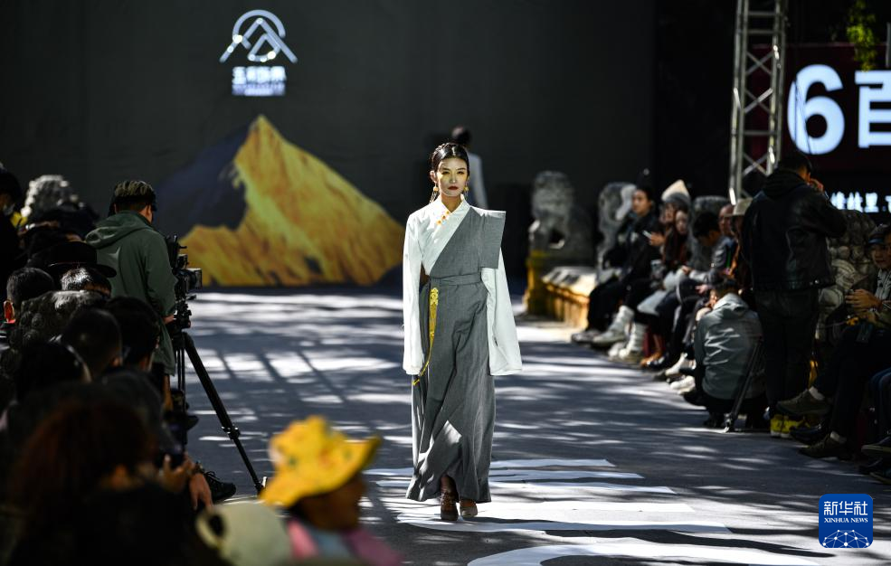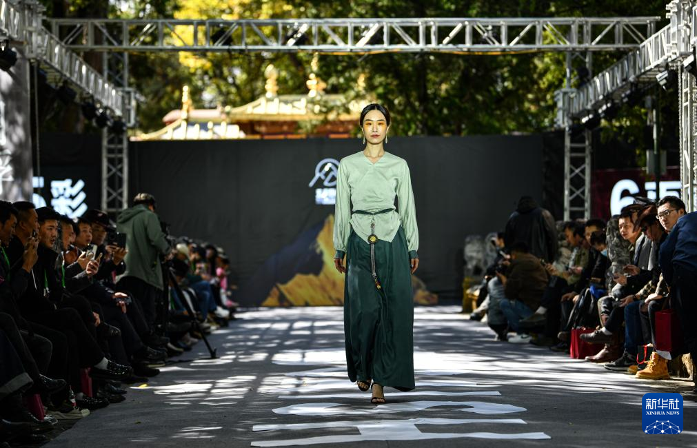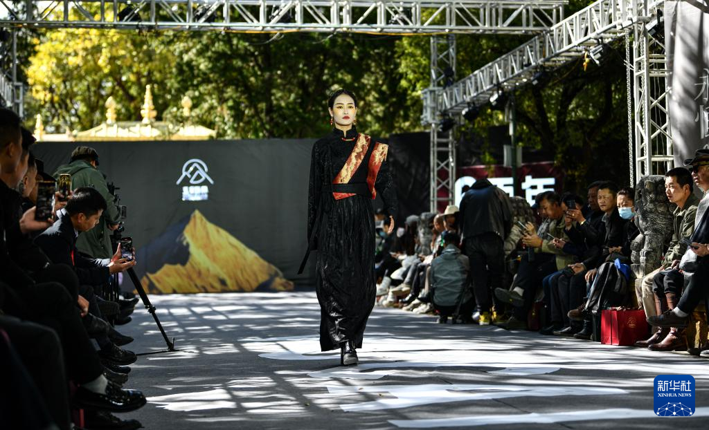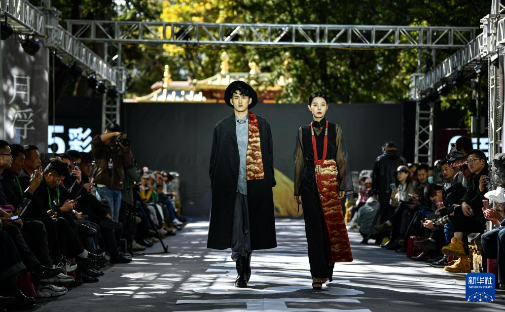10月21日,模特在时装发布会上展示创新藏装。新华社记者 晋美多吉 摄