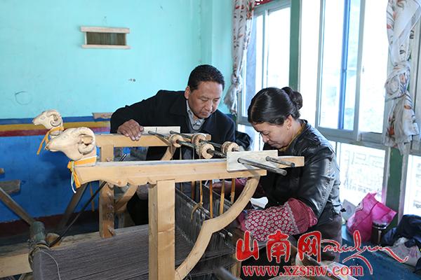 图为“泽帖尔”非遗传承人巴桑正给合作社员工传授编织技术 来源:山南网