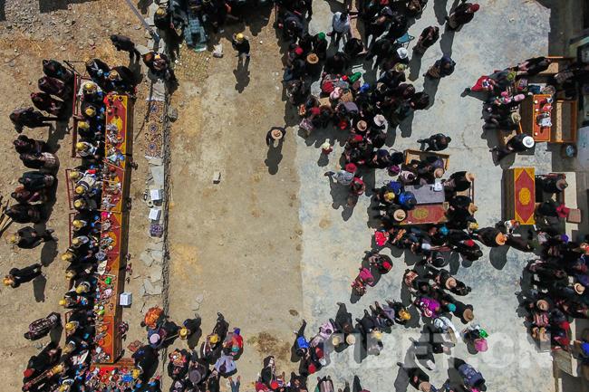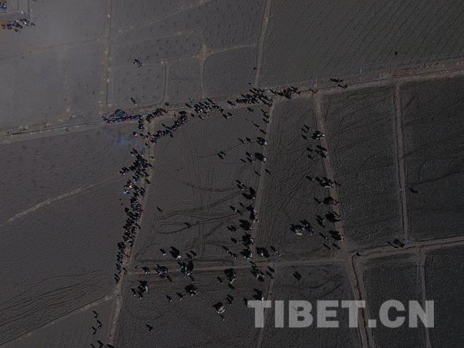 图为航拍坚耶村春耕仪式现场。
