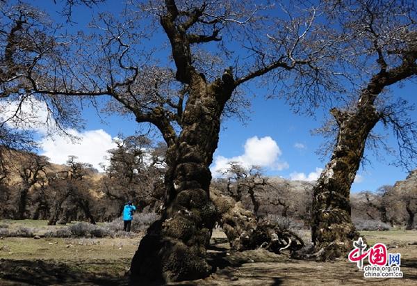 图为错那县曲卓木乡千年沙棘林,总面积有3000亩,千年沙棘林景区有800亩,生长千年的沙棘树形状各异,奇形怪状,如同盆景中的盆栽,整个景区就是一个硕大的盆景。整个沙棘林堪称亚洲乃至世界之最。来源:中国网。