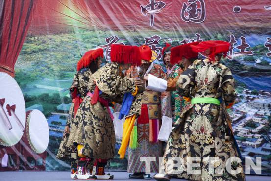 图为独具特色的藏戏表演。