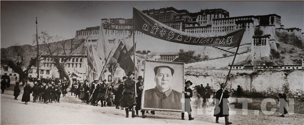 图为1959年4月,拉萨各族人民集会游行,热烈庆祝平叛胜利。