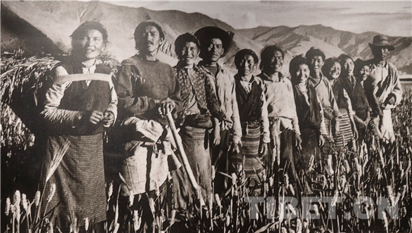 图为西藏第一个由翻身农奴组织起来的农业生产互助组——乃东县结巴乡朗生互助组全体成员。摄影:陈宗烈