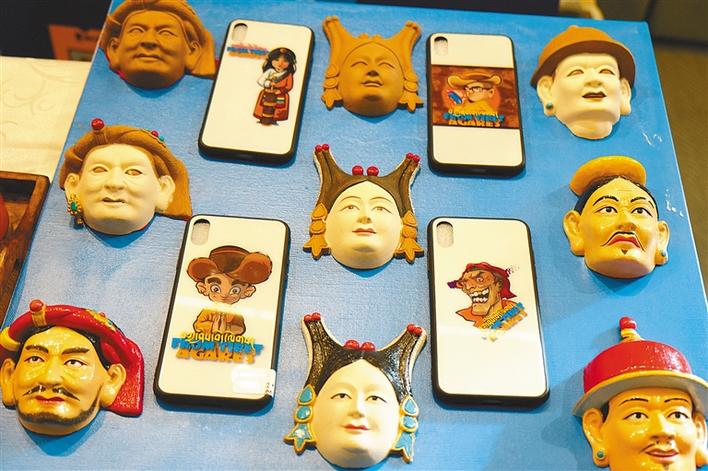 图为吉祥彩幔研发的民俗面具和文创手机壳。
