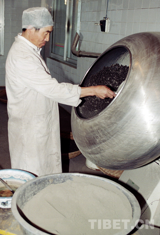 这是西藏昌都地区利民藏药厂工人正在生产藏药。该藏药厂曾被人事部和国家医药管理局授予全国医药系统先进单位称号(唐召明1998年摄)