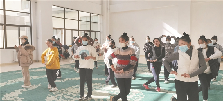 图为舞蹈演员正在排练室内进行开场舞排练。 拉萨融媒记者 章 舒摄