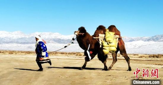 连日来,在青海省海西蒙古族藏族自治州德令哈市,当地德都蒙古牵骆驼“聚会”参加骆驼文化节。本届骆驼文化节上,参赛骆驼参加选美、接力、驮货及10公里、5公里等长度的比赛项目。青海德都蒙古穿大襟长袍,头戴毡帽或皮帽,腰束各色腰带,足穿长靴,饮食与藏族基本相同,喜食炒面和牛羊肉等。